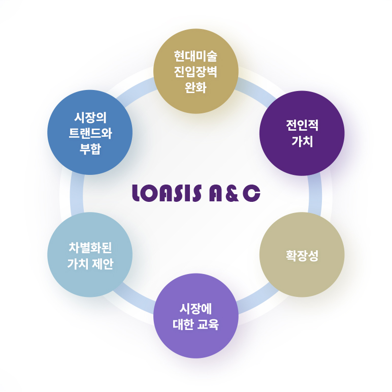 저희 LOASIS A&C는 재능있는 신진미술작가들의 작업과 잠재적인 수요자인 고객 간